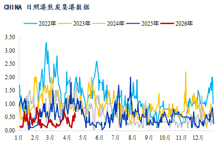 图三:Mysteel日照港冶金焦集港情况(日度)